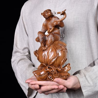 首页 / 工艺美术 / 绿檀木雕生肖猴子摆件十二生肖实木质动物雕刻工艺品家居送礼品